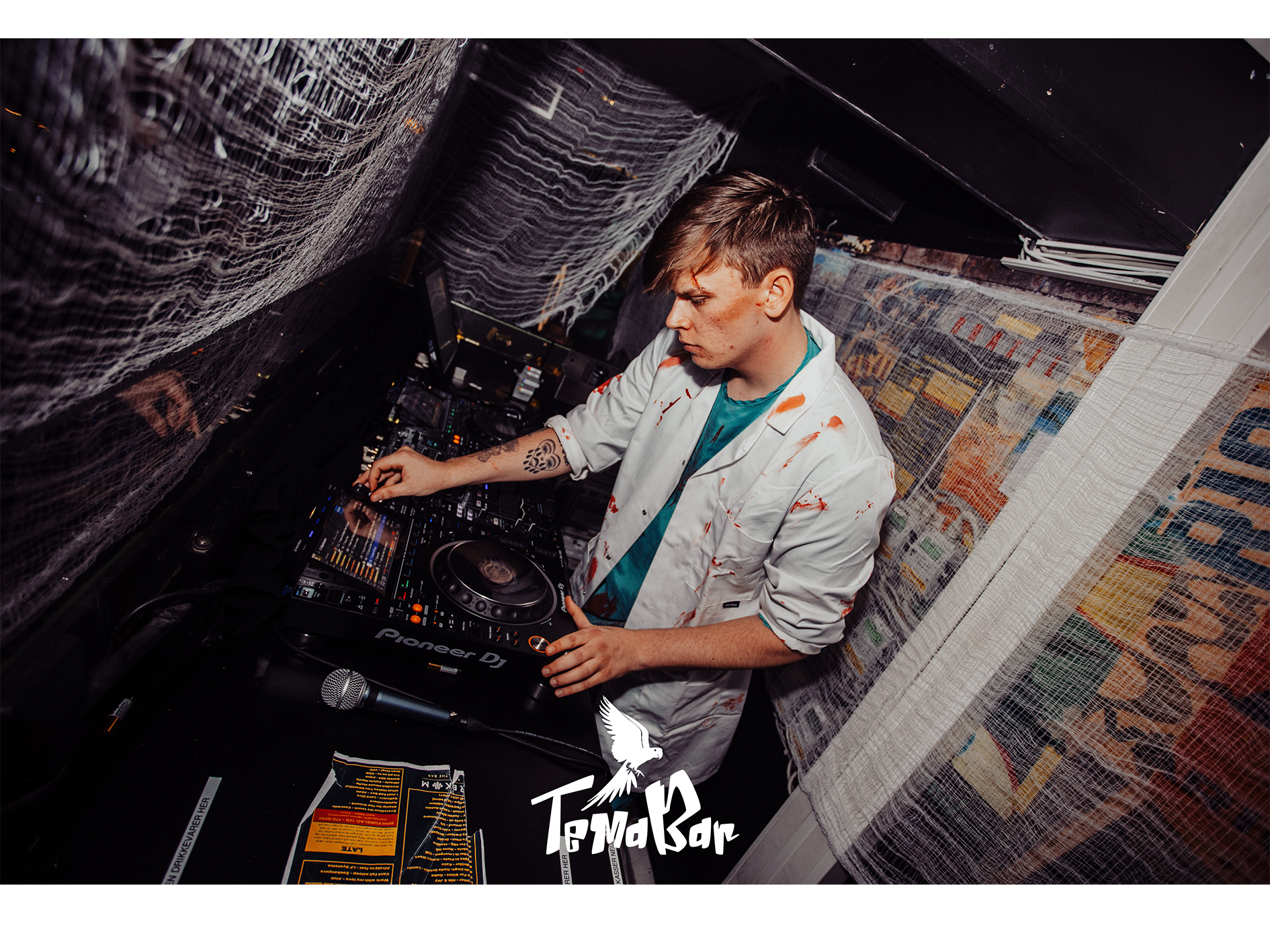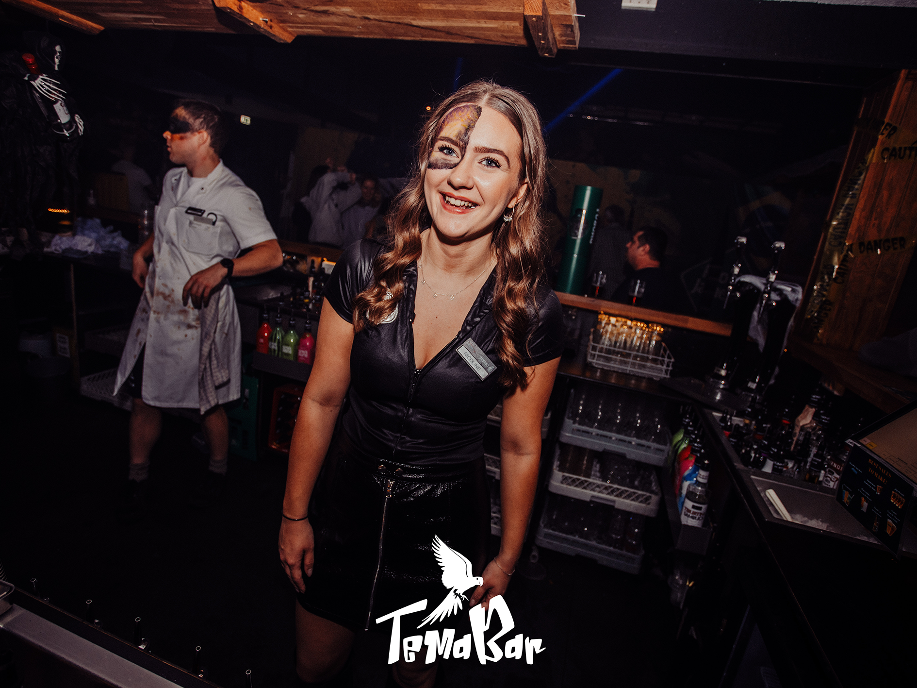 På billederne ses også personale med individuelle halloween make-up looks på Temabar i Viborg til Halloweenfest.